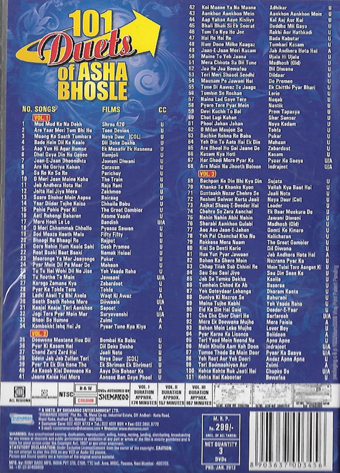 101 DUETS OF ASHA BHOSLE – VARIOUS FILMS SONGS – 3 DVD SET