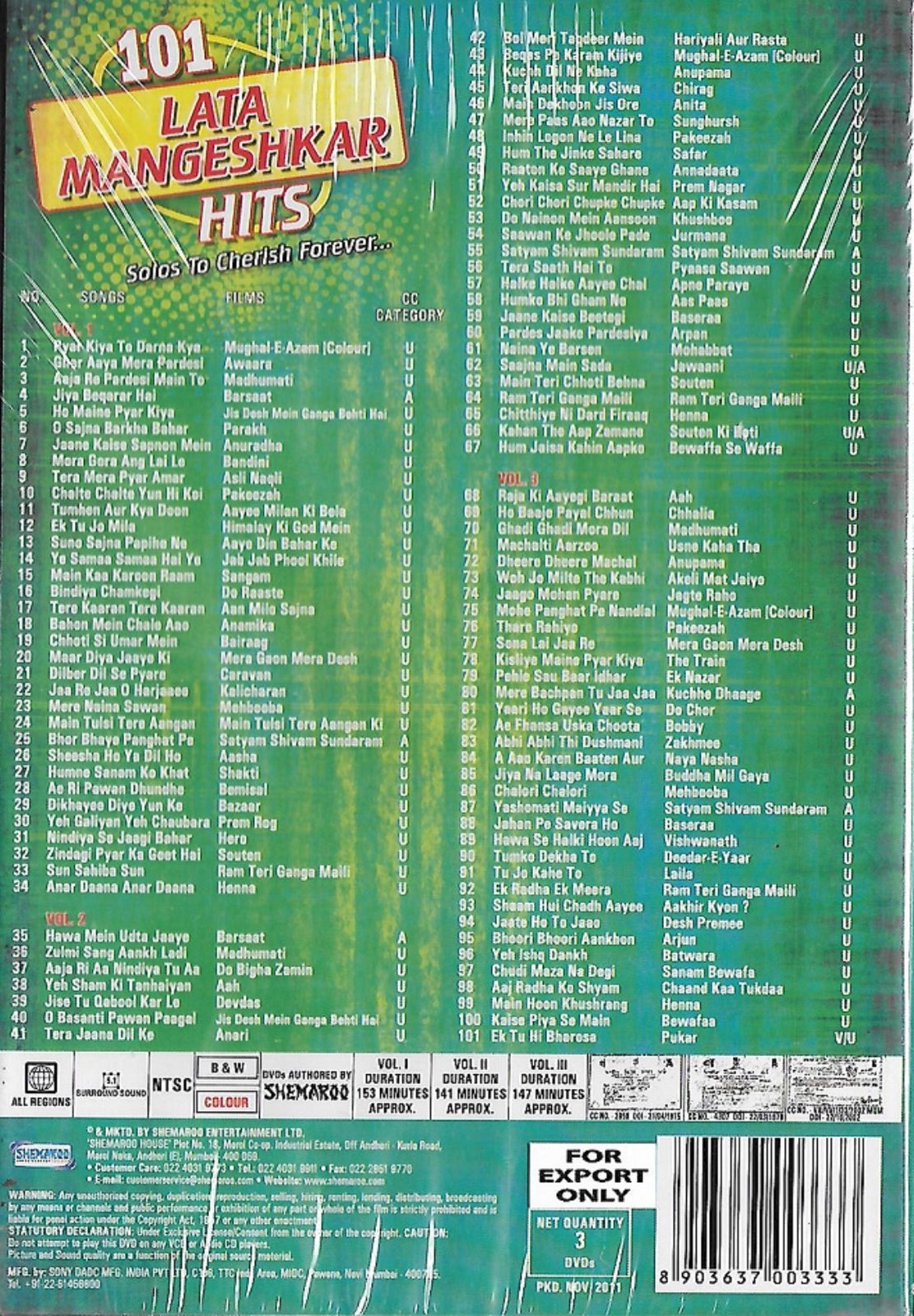 101 LATA MANGESHKAR SOLO HITS – VARIOUS FILMS SONGS – 3 DVD SET