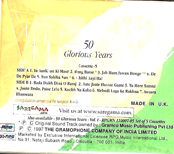 50 GLORIOUS YEARS – SET 2 – BRAND NEW BOLLYWOOD 5 CASSETTES BOX PACK