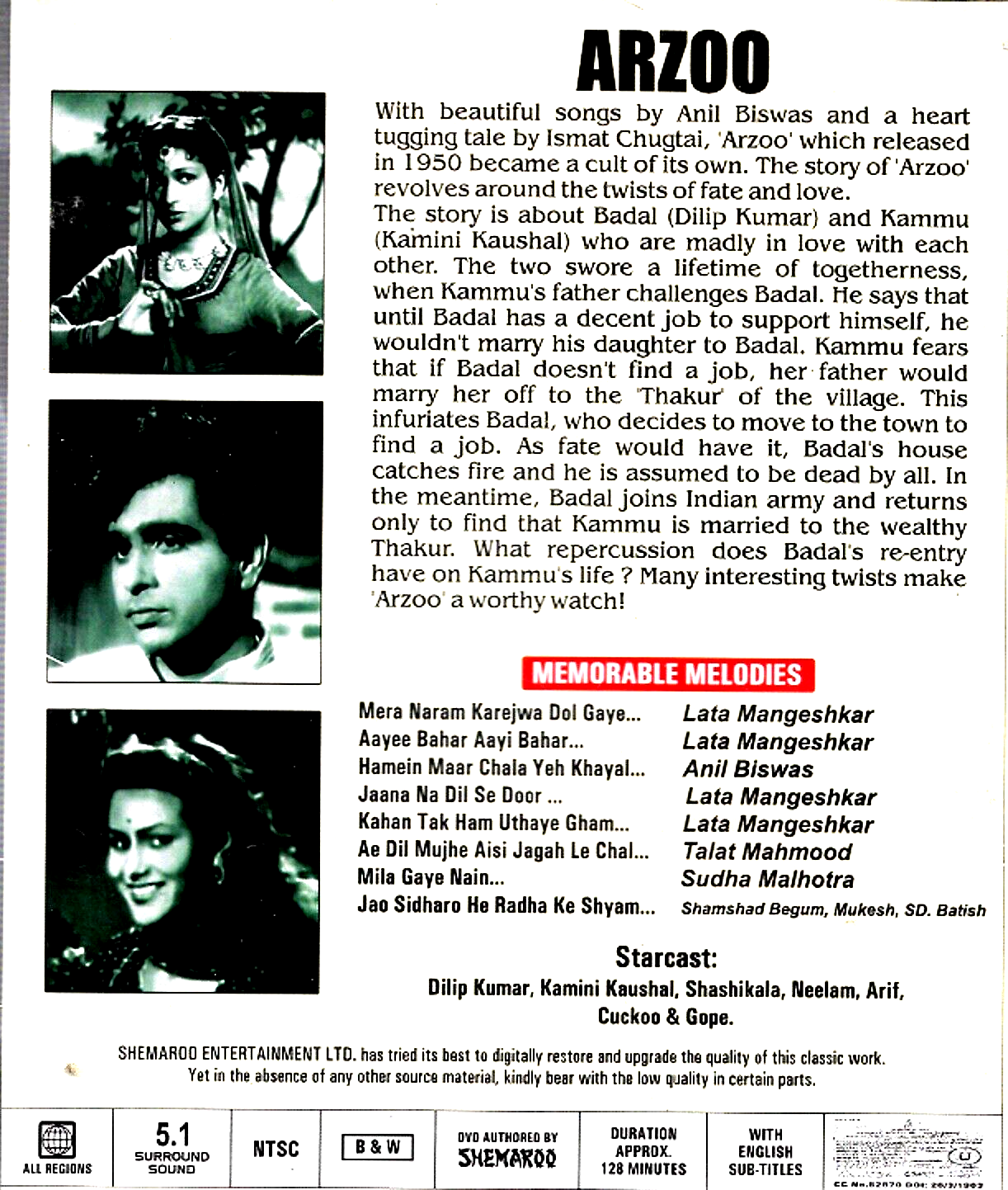 ARZOO (1950) – DILIP KUMAR, KAMINI KAUSHAL – NEW BOLLYWOOD DVD – ENGLISH SUBS