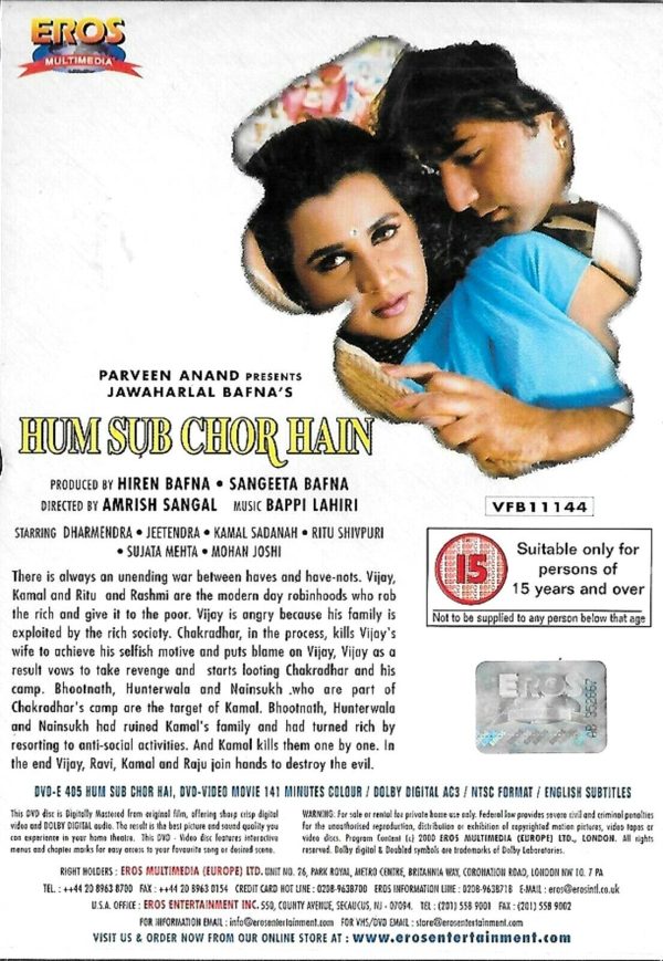 HUM SUB CHOR HAIN – NEW EROS BOLLYWOOD DVD -DHARMENDRA, JEETENDRA, KAMAL SADANAH