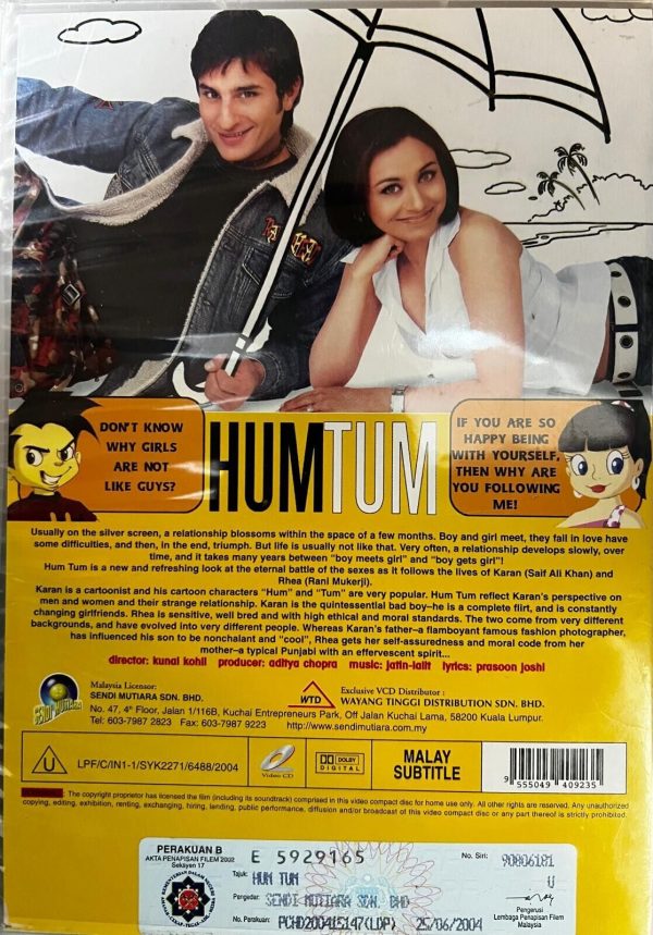 HUM TUM –SAIF ALI KHAN NEW, RANI MUKHERJI (2 DISCS) BOLLYWOOD DVD–MALAY SUBS