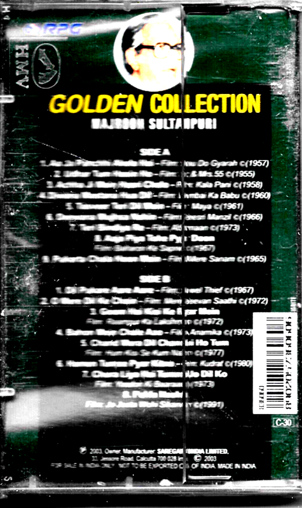 MAJROOH SULTANPURI – ROMANTIC POET – NEW BOLLYWOOD SARE HMV AUDIO CASSETTE