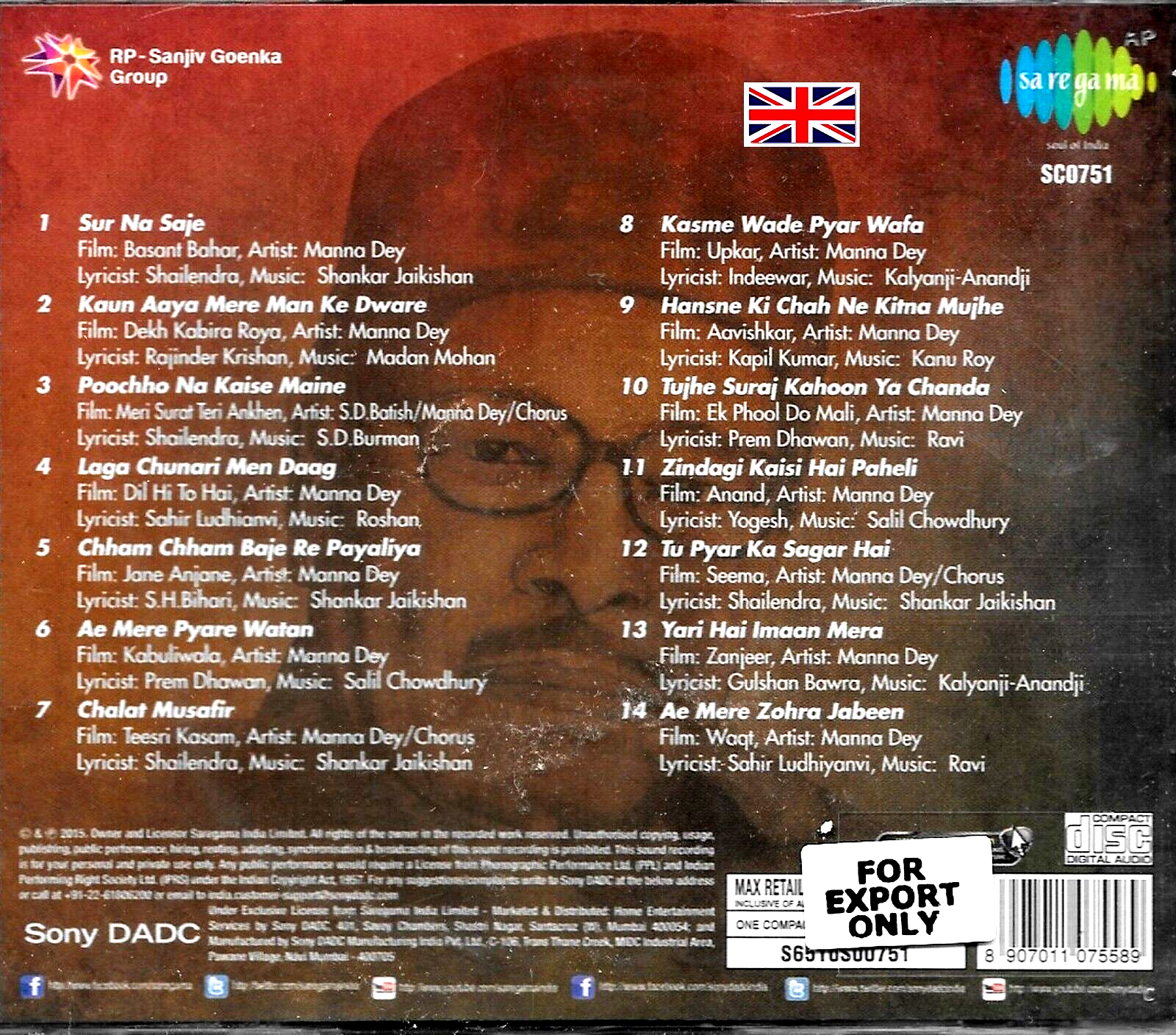MANNA DEY – VOICE FOREVER – NEW BOLLYWOOD SARE GAMA CD