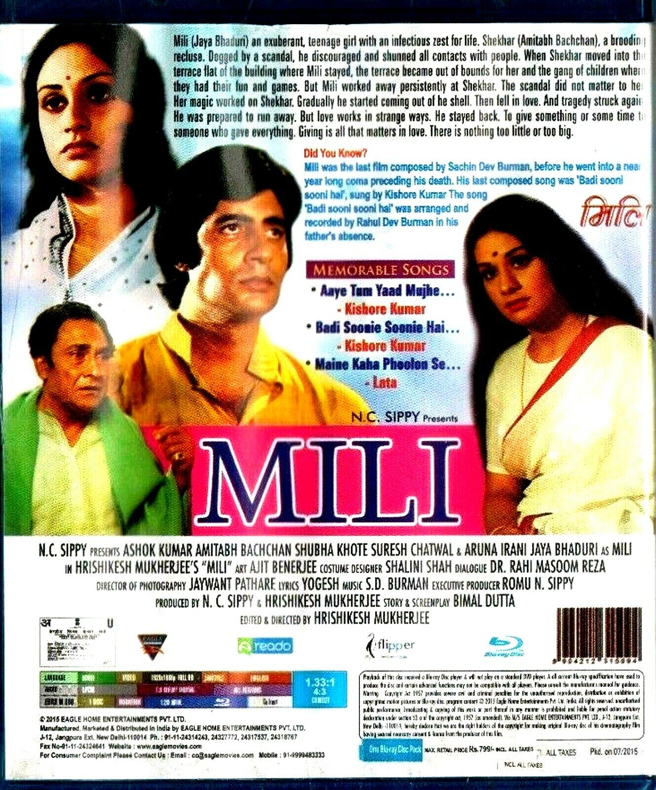 MILI – AMITABH BACHCHAN, JAYA BACHCHAN – BOLLYWOOD BLU-RAY – ENGLISH SUBTITLES