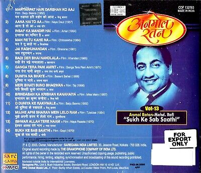 MOHD.RAFI – ANMOL RATAN – SUKH KE SAB SAATHI VOL 13 -NEW BOLLYWOOD SARE GAMA CD
