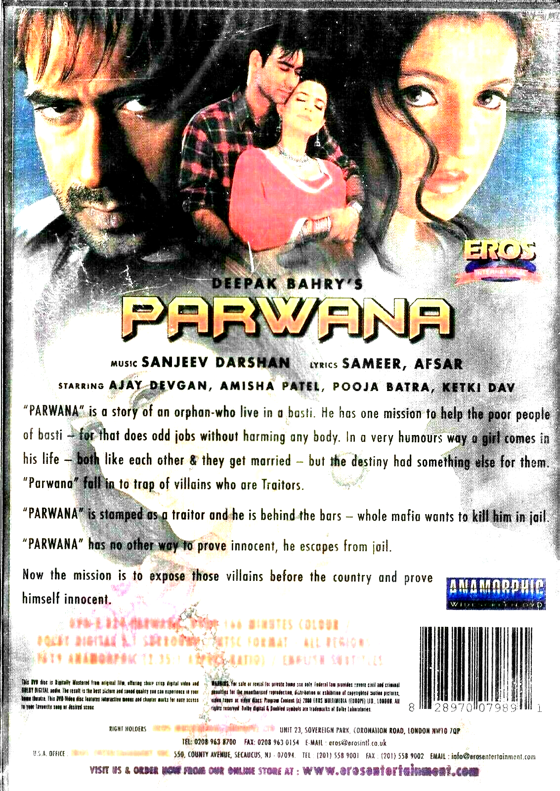 PARWANA – AJAY DEVGUN, AMISHA PATEL – NEW EROS BOLLYWOOD DVD – ENGLISH SUBTITLES