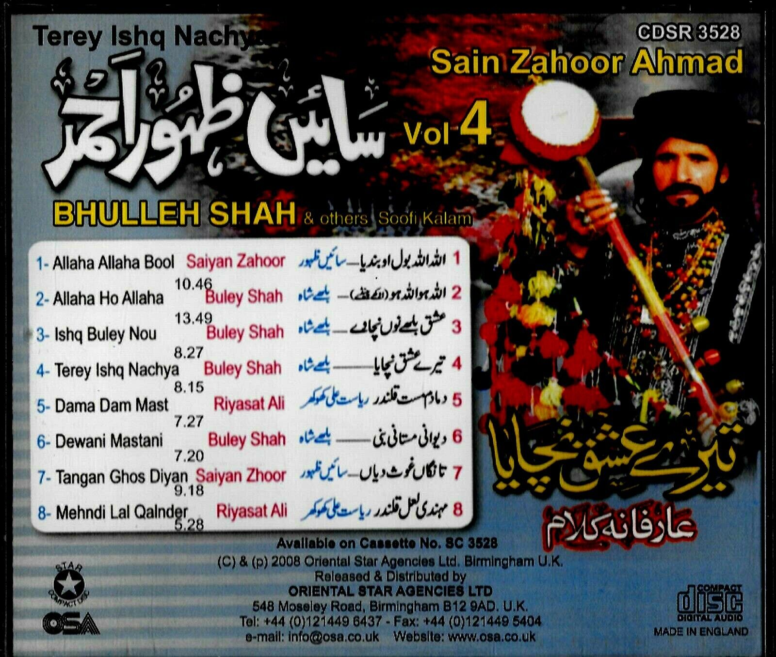 SAIN ZAHOOR AHMAD – TEREY ISHQ NACHAYA – VOL. 4 – SUFI KALAM CD