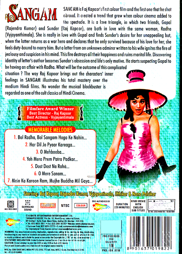 SANGAM – RAJ KAPOOR, VYJAYANTIMALA, RAJENDRA – BOLLYWOOD DVD – ENGLISH SUBTITLES