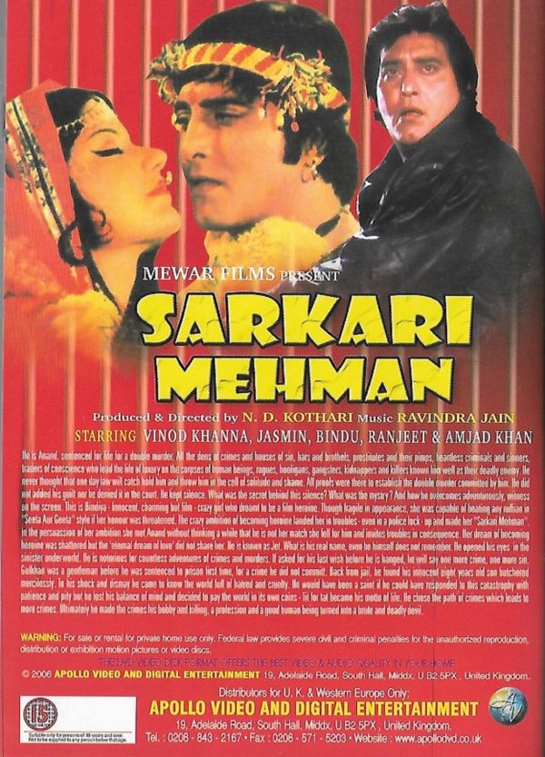 SARKARI MEHMAN – VINOD KHANNA, AMJAD KHAN – VERY RARE BOLLYWOOD DVD ENGLISH SUBS