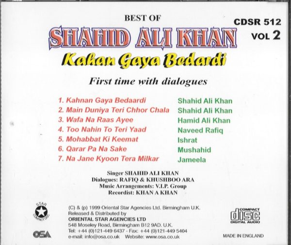 Be the first to review “SHAHID ALI KHAN – KAHAN GAYA BEDARDI (WITH DIALOGUES) – VOL 2 – BRAND NEW CD”