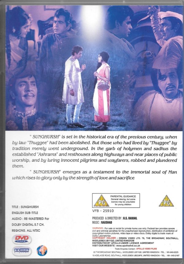 SUNGHURSH – DILIP KUMAR, BALRAJ SAHNI – NEW BOLLYWOOD DVD – ENGLISH SUBTITLES