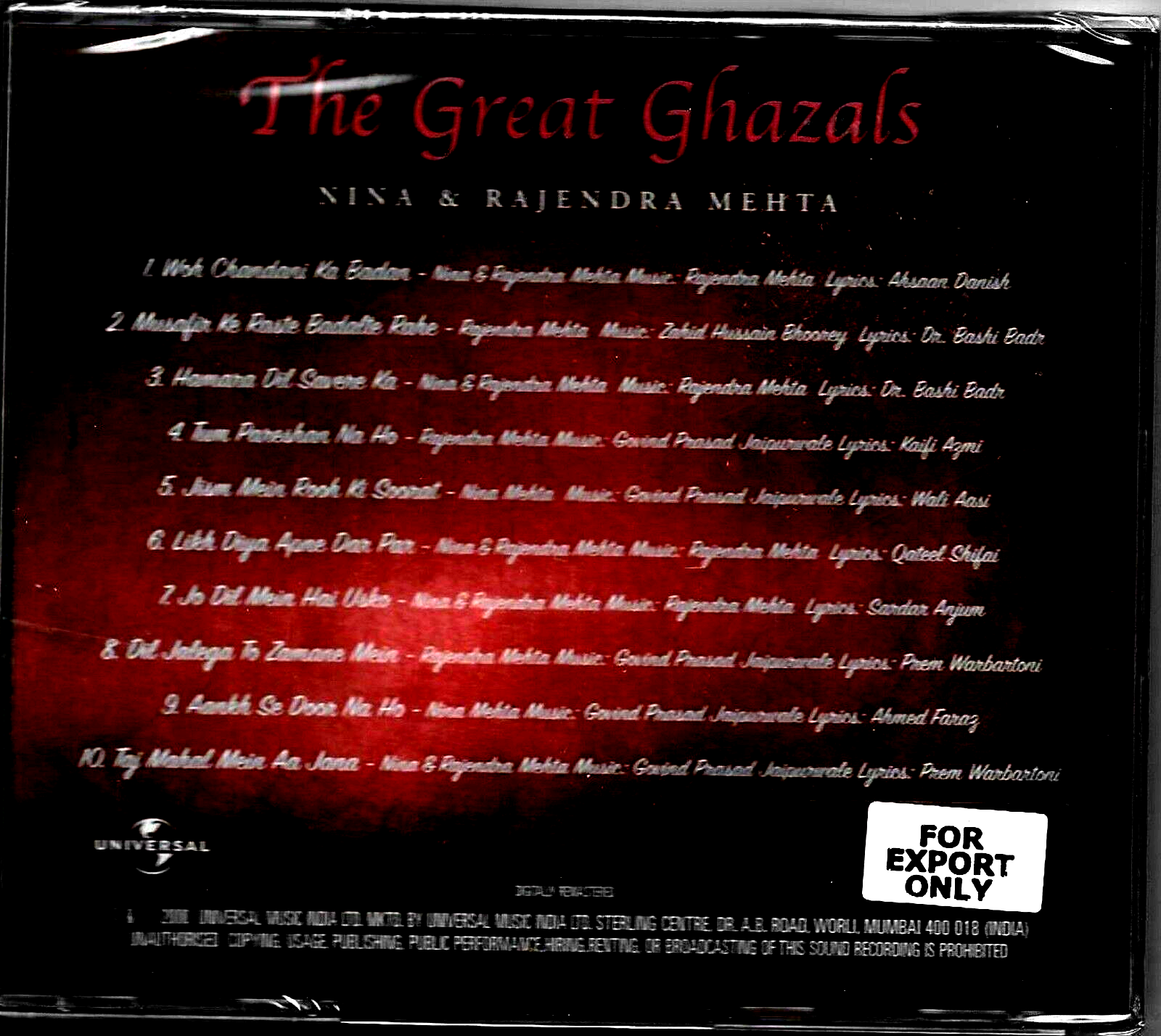 THE GREAT GHAZALS – NINA & RAJENDRA MEHTA – BRAND NEW UNIVERSAL GHAZALS CD | eBay